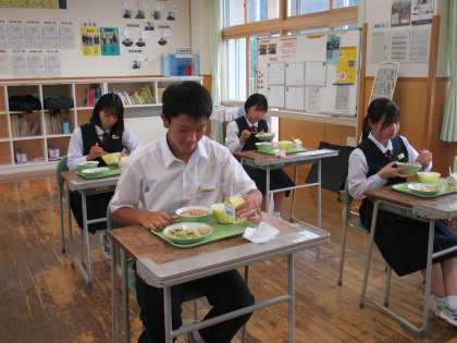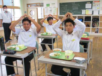 9月22日(木) 2年生の給食の様子です。 放送当番の生徒もいました。