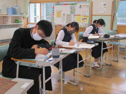 9月23日(金) 3年生の英語の授業の様子です。 「名詞を詳しく説明するには」という内容の授業でした。