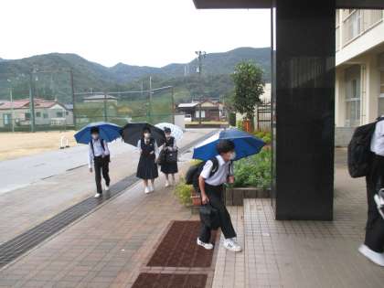 登校風景 公開日 2022/09/23 更新日 2022/09/23 日々の活動から 9月23日(金・祝)秋分の日 今日は、富山市統一学校公開日のため、祝日ではありますが、登校しています。 午前中は、普通授業、午後から小学6年生のために授業・部活動を公開します。併せて、中学校の保護者の皆様にも5限の授業を公開します。そのため、弁当持参で登校しています。あいにくの雨ですが、ご参加をお待ちしています。