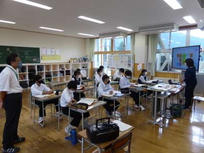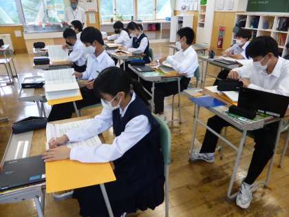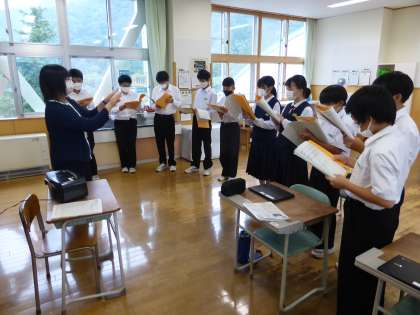 1年1限 音楽 公開日 2022/09/27 更新日 2022/09/27 日々の活動から 9月27日(火) 1年生の音楽の授業の様子です。 「心の中できらめいて」の録音を聞いて、改善点を話し合ってから さらに歌っていました。