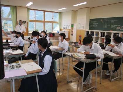 9月27日(火) 1年生の社会の授業の様子です。 「源平の争乱」という内容の授業でした。