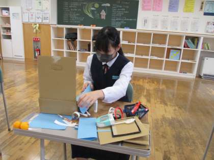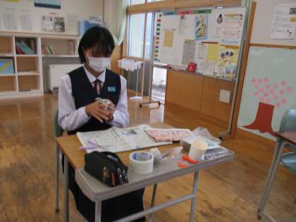 9月28日(水) 3年生の家庭科の授業の様子です。 「幼児のおもちゃ製作」という内容の授業でした。