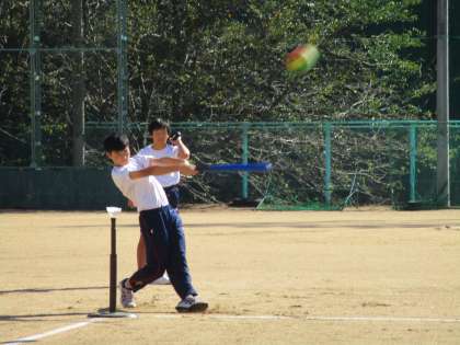 9月29日(木) 2・3年生の合同保健体育の様子です。 Tボールの試合をしていました。