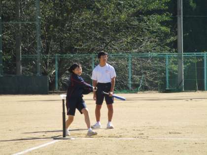 打ったらコーンまで走って戻ったら得点が入るというルールでした。