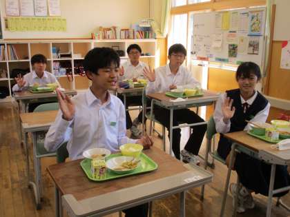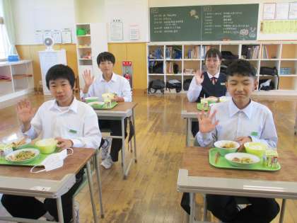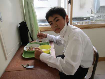 9月30日(金) 1年生の給食風景です。 放送当番の生徒もいました。