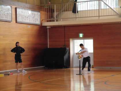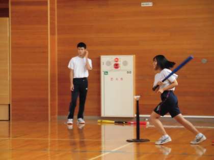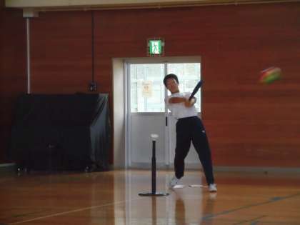10/3(月) 合同体育です。ティーボールの練習をしています! 力一杯打ちましょう!