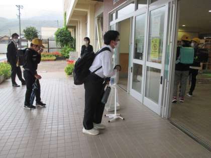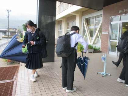 登校風景 公開日 2022/10/05 更新日 2022/10/05 日々の活動から 10月5日(水) 雨降りの朝です。今日から急激に寒くなってくるそうです。 寒暖差が激しいこの頃。 体調を崩しやすくなっています。 着る物で調節しましょう。