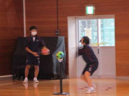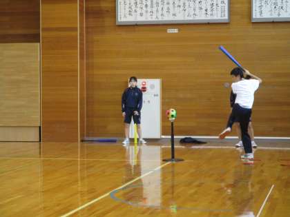 10月5日(水) 2・3年生の合同保健体育の様子です。 Tボールの試合をしていました。