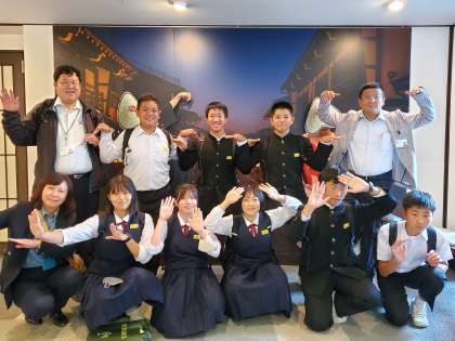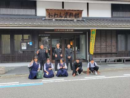 桂樹舎をあとにして、おわら資料館につきました。 集合写真です!