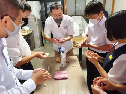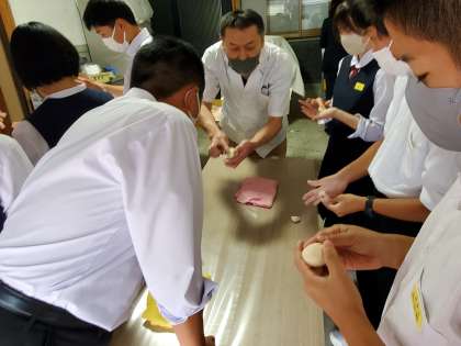 小蔵亀寿堂で和菓子作り体験をしています! まずは練習から!