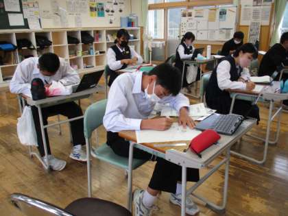 10月7日(金) 2年生の学級活動の様子です。 昨日の校外学習のまとめをしていました。