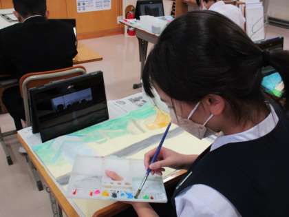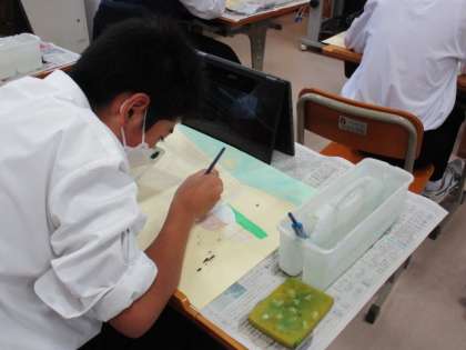 10月7日(金) 1年生の美術の授業の様子です。 色塗りをがんばっていました。