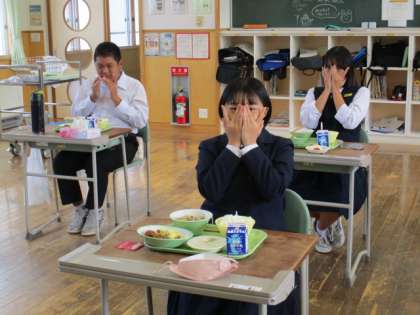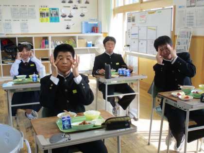 10月13日(木) 2年生の給食の様子です。 放送当番の生徒もいました。