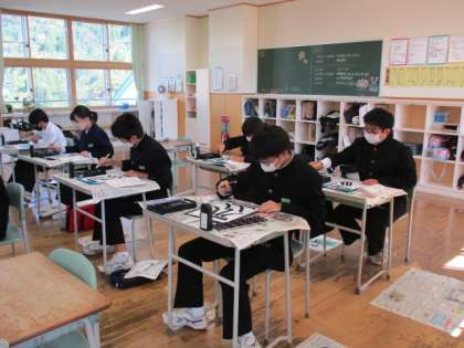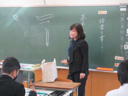 10月14日(金) 1年生の国語の授業の様子です。 毛筆の基本を練習していました。