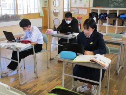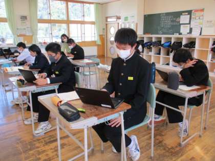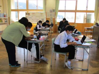 10月14日(金) 2年生の英語の授業の様子です。 学習発表会で展示する英作文を作成していました。
