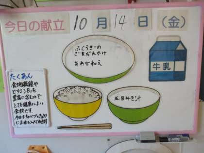 本日の給食メニューです。