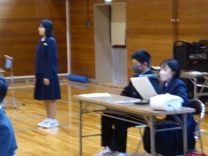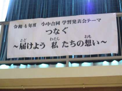 小中合同学習発表会 1 公開日 2022/10/22 更新日 2022/10/22 日々の活動から 10月22日(土) 生徒会執行部が司会をして8時30分に開会式が始まりました。 生徒会長の言葉の様子です。