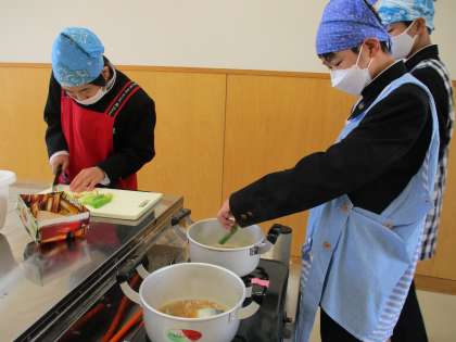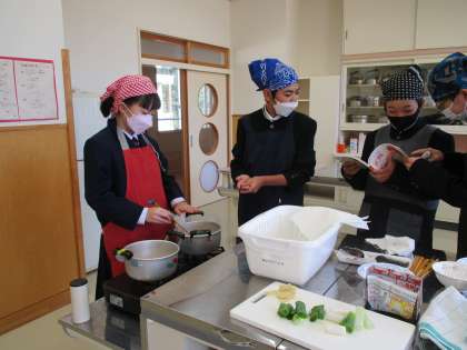 本日の授業の様子 1 公開日 2022/10/26 更新日 2022/10/26 日々の活動から 10月26日(水) 1年生の家庭科の授業の様子です。 今日は、調理実習で「さばの味噌煮」を作っていました。