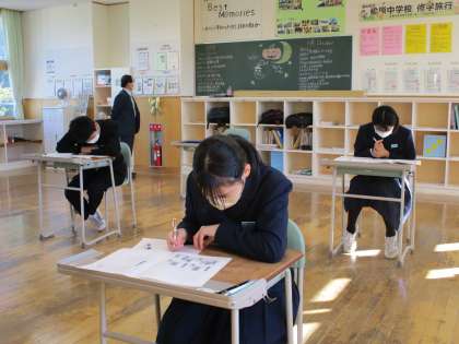 本日の授業の様子 1限 公開日 2022/10/28 更新日 2022/10/28 日々の活動から 10月28日(金) 本日の1限の授業の様子です。 1年生は、英語で会話をしていました。 2年生は、数学で「証明に慣れよう」という内容の授業でした。 3年生は、英語の確認テストに取り組んでいました。