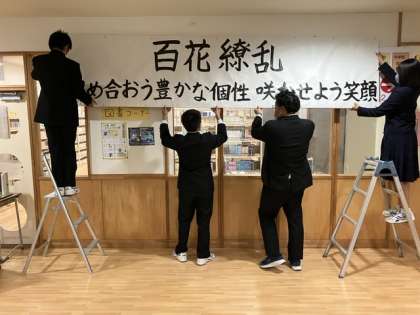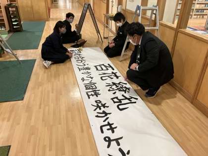 生徒会執行部の活動 公開日 2022/11/01 更新日 2022/11/01 日々の活動から 11月1日(火) 本日の生徒会執行部の活動の様子です。 後期のスローガンを玄関に掲示していました。 今後も頑張ってください。