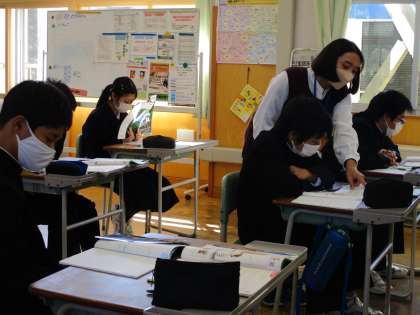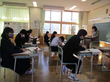 本日の1限の授業の様子 公開日 2022/11/02 更新日 2022/11/02 日々の活動から 11月2日(水) 本日の1限の授業の様子です。 1年生は、英語で現在進行形の学習をしていました。 2年生は、国語で「第2のまとまりをまとめよう」という内容の授業でした。 3年生は、数学で相似比と体積比の関係を調べる実験をしていました。