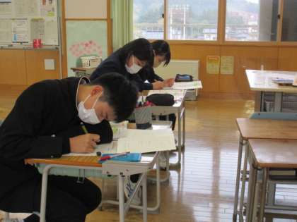 本日の2限の授業の様子 公開日 2022/11/04 更新日 2022/11/04 日々の活動から 11月4日(金) 本日の2限の授業の様子です。 1年生は、理科で「物質の状態変化」という内容の授業でした。 2年生は、国語で「筆者の主張に対する自分の考えをまとめよう」という内容の授業でした。 3年生は、数学でこれまでの復習をしていました。