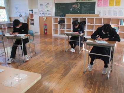 本日の6限の授業の様子 公開日 2022/11/07 更新日 2022/11/07 日々の活動から 11月7日(月) 本日の6限の授業の様子です。 1年生は、数学で反比例の表・式・グラフについて学んでいました。 2年生は、学級活動で京都について調べていました。 3年生は、学級活動で各種のアンケートに答えていました。