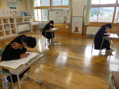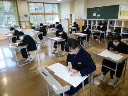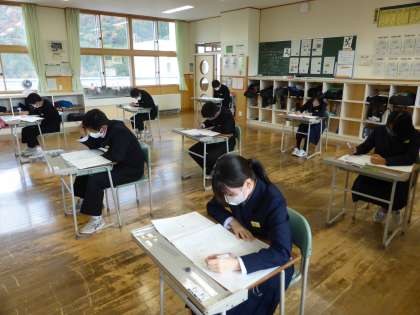 11月8日(火) 本日全学年とも1限から3限まで学力調査です。 上から1年生、2年生、3年生の様子です。