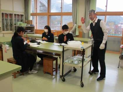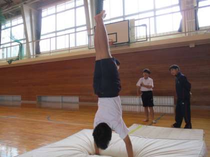 本日の4限の授業 公開日 2022/11/08 更新日 2022/11/08 日々の活動から 11月8日(火) 本日の4限の授業の様子です。 1年生は、保健体育で倒立前転をしていました。 2年生は、美術でランプシェードに粘土を巻いていました。 3年生は、理科で「水中ではたらく力を調べよう」という内容の授業でした。