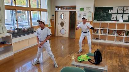 今日は午前からの雨のため、一年生は室内で筋トレをしました! 二年生は、ピッチングをしました!