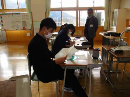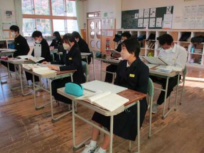2限の授業 公開日 2022/11/11 更新日 2022/11/11 日々の活動から 11月11日(金) 2限の授業の様子です。 1年生は、理科で「物質の状態変化と体積・質量の変化について考えよう」という内容の授業でした。 2年生は、国語で「扇の的とはどういうことか」という内容の授業でした。 3年生は、数学で「円周角の定理」について学んでいました。その後テストの見直しをしていました。
