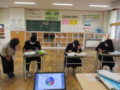 5限の授業の様子 公開日 2022/11/14 更新日 2022/11/14 日々の活動から 11月14日(月) 5限の授業の様子です。 1年生は、理科で「水の状態変化」という内容の授業でした。 2年生は、社会で「中部地方の工業」という内容の授業でした。 3年生は、英語で「グラフや表の読み取り」ということを学んでいました。