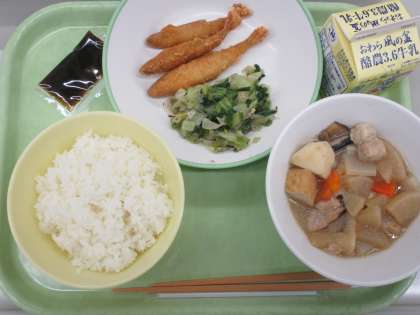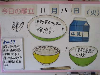 給食メニューと放送室 公開日 2022/11/16 更新日 2022/11/16 日々の活動から 11月16日(水) 給食メニューです。 ごはん、牛乳、わかさぎのフリッター、梅肉和え、里芋と厚揚げのうま煮、のり佃煮 放送室では、学習実践部員がおすすめの本を紹介していました。