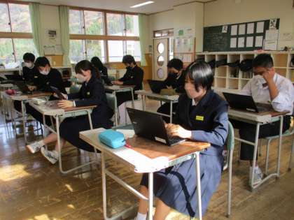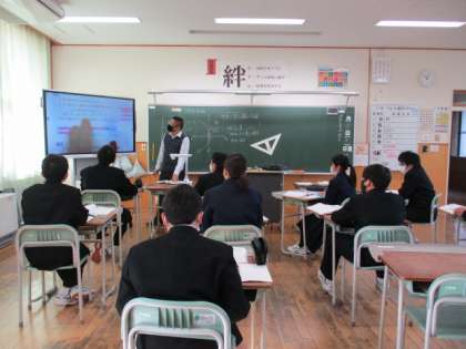 2限の授業の様子 公開日 2022/11/17 更新日 2022/11/17 日々の活動から 11月17日(木) 1年生は、数学で「対称移動」という内容の授業でした。 2年生は、楡の木タイムで京都の見所を調べていました。 3年生は、英語でスピーキングテストをしていました。