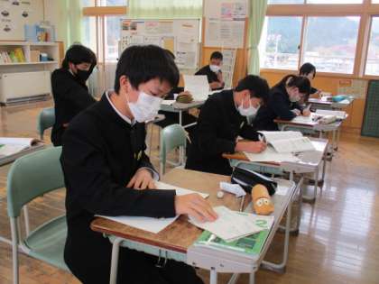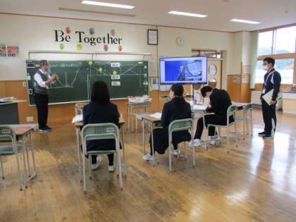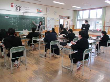 4限の授業の様子 公開日 2022/11/17 更新日 2022/11/17 日々の活動から 11月17日(木) 1年生は、国語で「歴史的仮名遣いに注意して音読しよう」という内容の授業でした。 2年生は、数学でこれまでの復習をしていました。 3年生は、理科で「力学低エネルギーの保存について考えよう」という内容の授業でした。