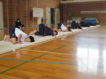 5限の授業の様子 公開日 2022/11/17 更新日 2022/11/17 日々の活動から 11月17日(木) 1年生は、保健体育で発表会に向けて技の練習をしていました。 2年生は、理科で「大気圧と圧力」という内容の授業でした。 3年生は、国語で「古今、新古今の中から一首選び鑑賞文を書こう」という内容の授業でした。