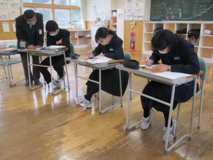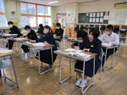6限の授業の様子 公開日 2022/11/22 更新日 2022/11/22 日々の活動から 11月22日(火) 1年生は、国語で「現代語の文章と古文を比べて気づいたことをまとめよう」という内容の授業でした。 2年生は、社会で「大政奉還」という内容の授業でした。 3年生は、数学でこれまでの復習をしていました。