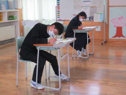 2限の授業の様子 公開日 2022/11/24 更新日 2022/11/24 日々の活動から 11月24日(木) 1年生は、英語で期末考査の対策問題をしていました。 2年生は、国語で「『仁和寺のある法師』の話を作者が書いた意図を考えよう」という内容の授業でした。 3年生は、保健体育の期末考査に取り組んでいました。