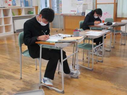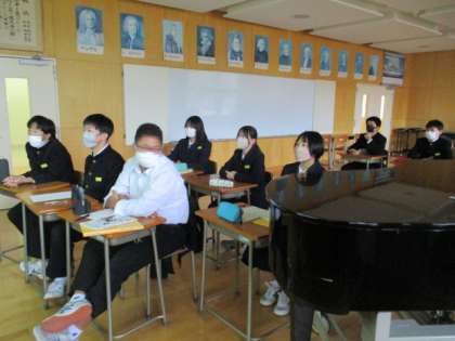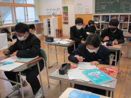 5限の授業の様子 公開日 2022/11/24 更新日 2022/11/24 日々の活動から 11月24日(木) 1年生は、数学で期末考査の対策問題をしていました。 2年生は、音楽でミュージカルについて学んでいました。 3年生は、理科で「仕事の力学的エネルギーについて考えよう」という内容の授業でした。