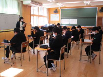 3限の授業の様子 公開日 2022/11/25 更新日 2022/11/25 日々の活動から 11月25日(金) 1年生は、音楽で「琴について知ろう」という内容の授業でした。 2年生は、国語で「話のおもしろさについて考えよう」という内容の授業でした。 3年生は、理科の期末考査に取り組んでいました。