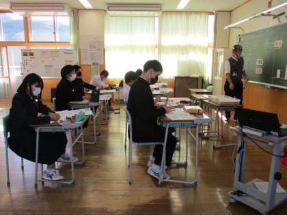 4限の授業の様子 公開日 2022/11/28 更新日 2022/11/28 日々の活動から 11月28日(月) 1年生は、国語で故事成語について学習していました。 2年生は、理科で「水蒸気の変化について考えよう」という内容の授業でした。 3年生は、数学でこれまでの復習をしていました。