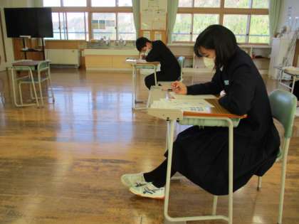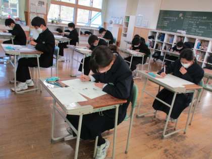 11月28日(月) 全学年で技術家庭の期末考査が行われました。 上から1年生、2年生、3年生です。