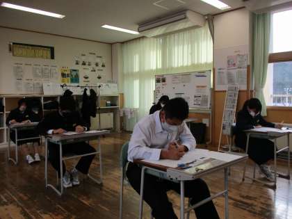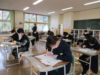 11月29日(火) 1年生と2年生は美術の期末考査でした。 3年生は、国語でテストの見直しをしていました。