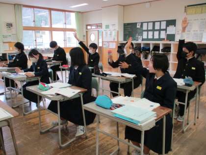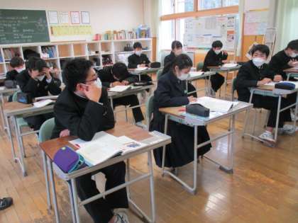 3限の授業の様子 公開日 2022/12/06 更新日 2022/12/06 日々の活動から 12月6日(火) 1年生は、国語で「方言と共通語」という内容の授業でした。 2年生は、英語でした。 3年生は、美術で名前の篆刻をしていました。