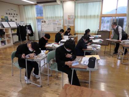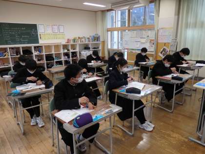 5限の授業の様子 公開日 2022/12/07 更新日 2022/12/07 日々の活動から 12月7日(水) 1年生は、数学で垂直二等分線の作図をしていました。 2年生は、理科でこれまでの復習をしていました。 3年生は、英語で仮定法を使った自己表現をしていました。 アルバム用に担任の写真撮影もありました。