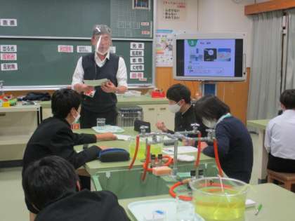 1年生は、理科で「光の屈折」という内容の授業でした。