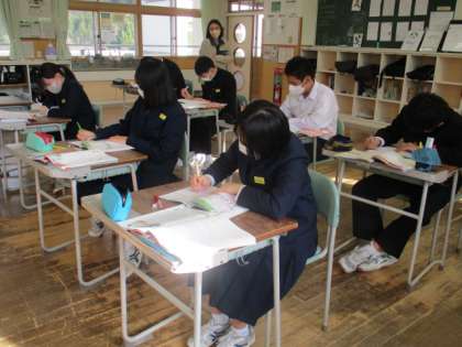 2限の授業の様子 公開日 2022/12/13 更新日 2022/12/13 日々の活動から 12月13日(火) 1年生は、美術でテープカッターの側面に彫刻をしていました。 2年生は、英語で「比較表限のまとめを」という内容の授業でした。 3年生は、国語の確認テストでした。