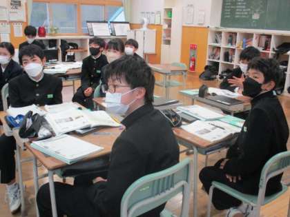 1年生は、英語で「地域の問題や世界的問題についてテーマを決めてポスターをつくろう!」という内容の授業でした。