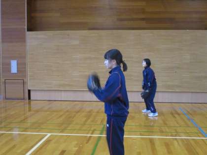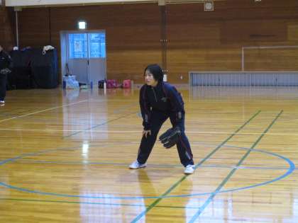 グラウンドと体育館では、ボールの跳ね方が異なるため、捕球に苦戦している様子でした。