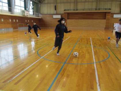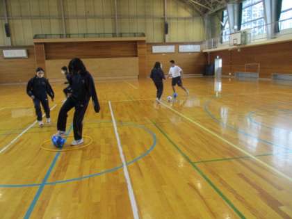 2・3年生は、保健体育で室内でフットサルをしていました。